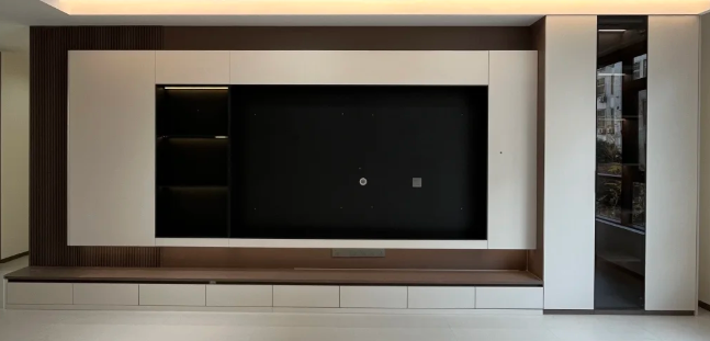 ขาตั้งทีวีสำหรับผนังห้องนั่งเล่นเฟอร์นิเจอร์ที่ใช้งานได้และมีสไตล์