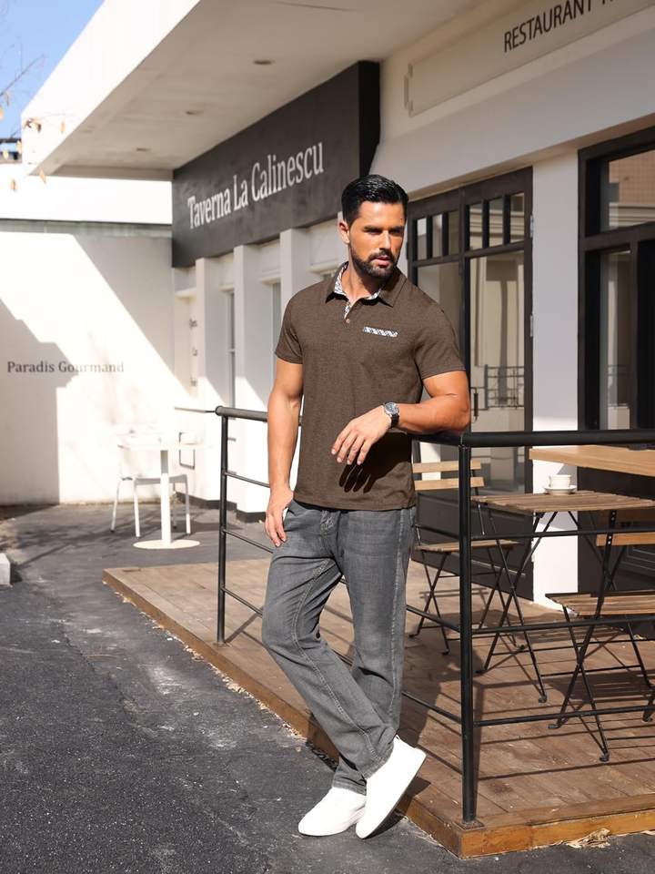 เสื้อยืดผู้ชายแขนสั้นผ้าโพลีเอสเตอร์เนื้อนุ่ม ยืดหยุ่น ระบายอากาศได้ดี สวมใส่สบาย เหมาะกับการเคลื่อนไหวในชีวิตประจำวัน