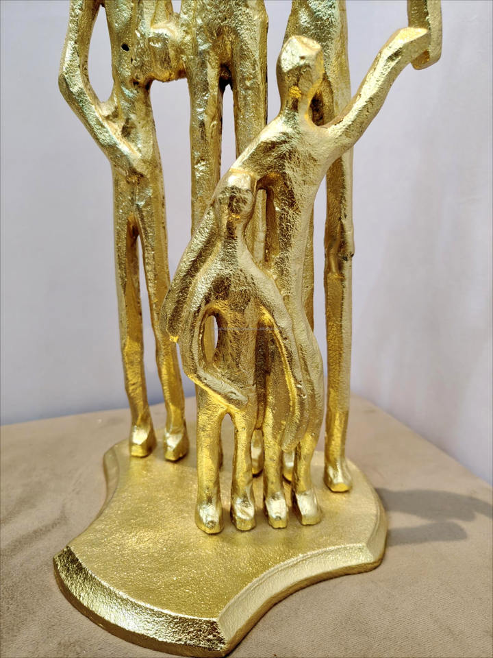 รูปปั้นศิลปะโลหะสีทองแบบโมเดิร์นภาพแอบสแตรกต์สำหรับเด็กสามคนที่เก๋ไก๋ห้าคนเทคนิคการขัดเงาด้วยการพิมพ์ลายหลุมศพ