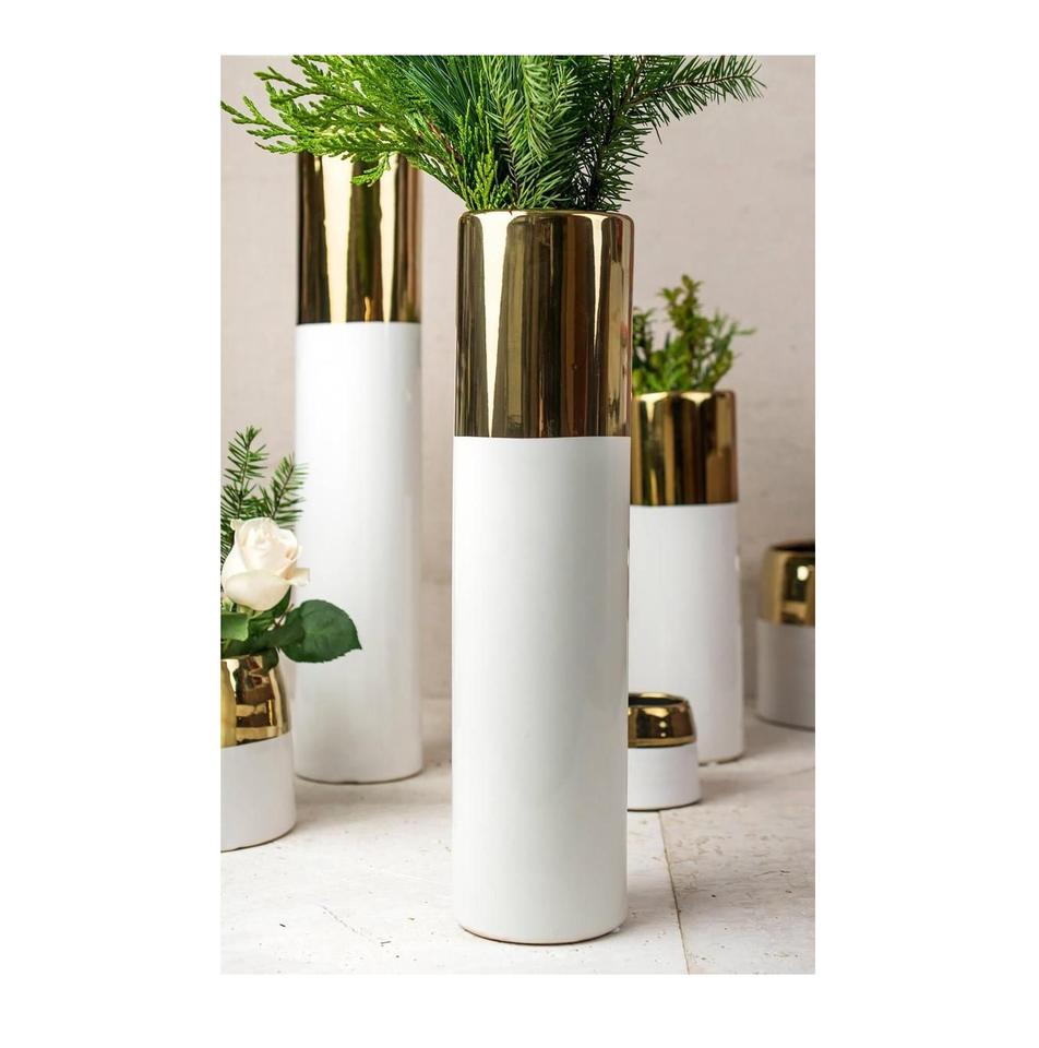 แจกันดอกไม้ทรงกระบอกโลหะทันสมัย เหมาะสำหรับดอกไม้สด ดอกไม้ประดิษฐ์ และการจัดดอกไม้แห้ง