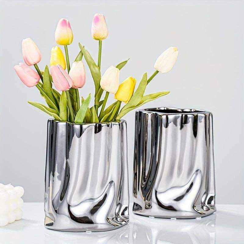 แจกันดอกไม้โลหะทันสมัย ดีไซน์ตกแต่งบ้าน ของตกแต่งโต๊ะกลาง ชิ้นงานประดับตกแต่ง ดีไซน์มีสไตล์ รูปทรงโดดเด่น