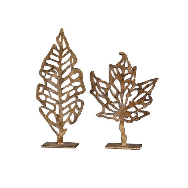 ขายประติมากรรมรูปใบไม้โลหะสมัยใหม่ประติมากรรมโต๊ะตกแต่งโลหะทําด้วยมือสําหรับตกแต่ง