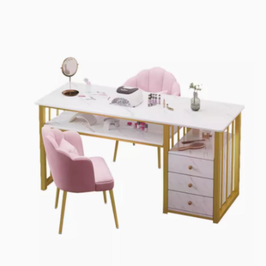 โต๊ะทำเล็บโลหะทันสมัยหรูหรา ราคาพิเศษ โต๊ะทำเล็บคู่ ทำจากแผ่นไม้อัดความหนาแน่นสูง
