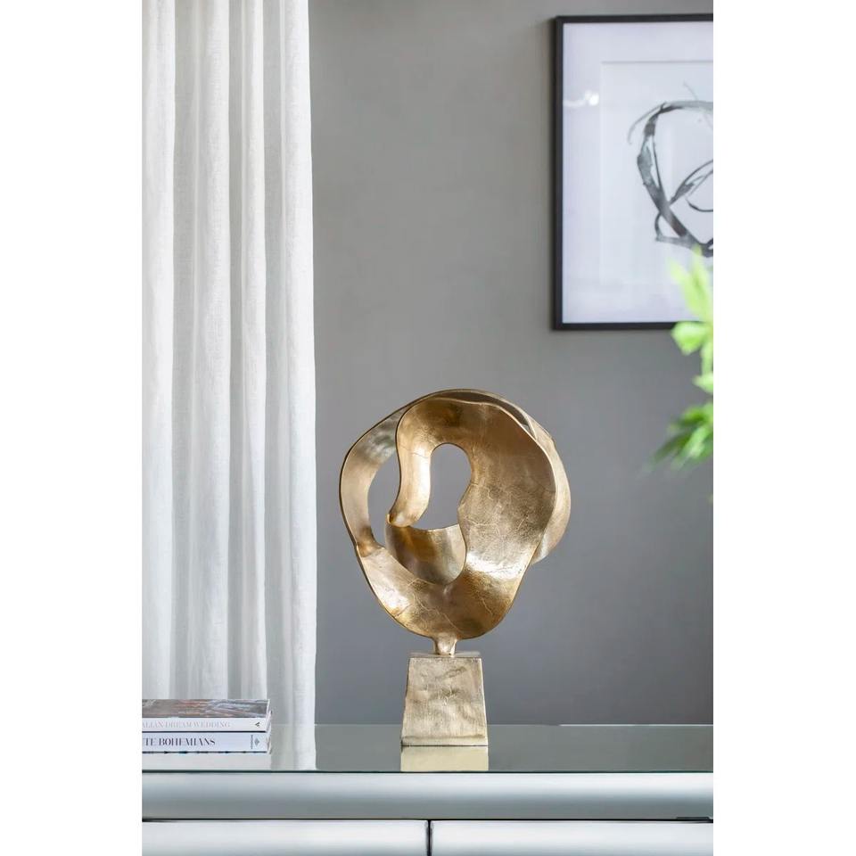 งานประติมากรรมตกแต่งโต๊ะทรงเรขาคณิตนามธรรม ทำด้วยมือ ทนทาน เป็นมิตรกับสิ่งแวดล้อม ดีไซน์ทันสมัย วงแหวนเหล็กเคลือบทอง