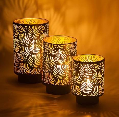 ที่วางเสาโลหะสำหรับตกแต่งบ้านที่สง่างามที่วางเชิงเทียนลายใบไม้แบบทันสมัยสำหรับตกแต่งคริสต์มาส