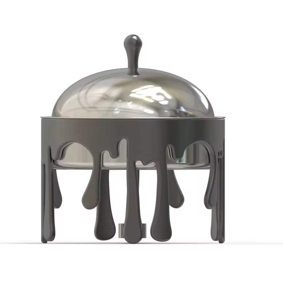 โถใส่ขนมดีไซน์ทันสมัยลายหยดน้ำโลหะ ฝาปิดทรงโดม หรูหราสำหรับรอมฎอน ชามเสิร์ฟสำหรับเทศกาลอีด ของตกแต่งอิสลาม สำหรับเก็บขนมหวาน ช็อกโกแลต