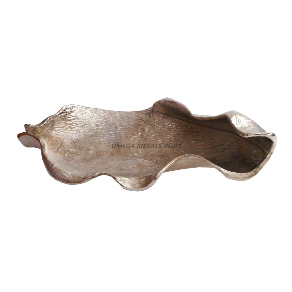 ถาดเสิร์ฟสีเงินเมทัลลิกที่ทันสมัยมีรูปทรงที่เป็นเอกลักษณ์พร้อมการตกแต่งเสร็จสิ้นเพื่อการนำเสนอสุดชิคและการใช้งาน