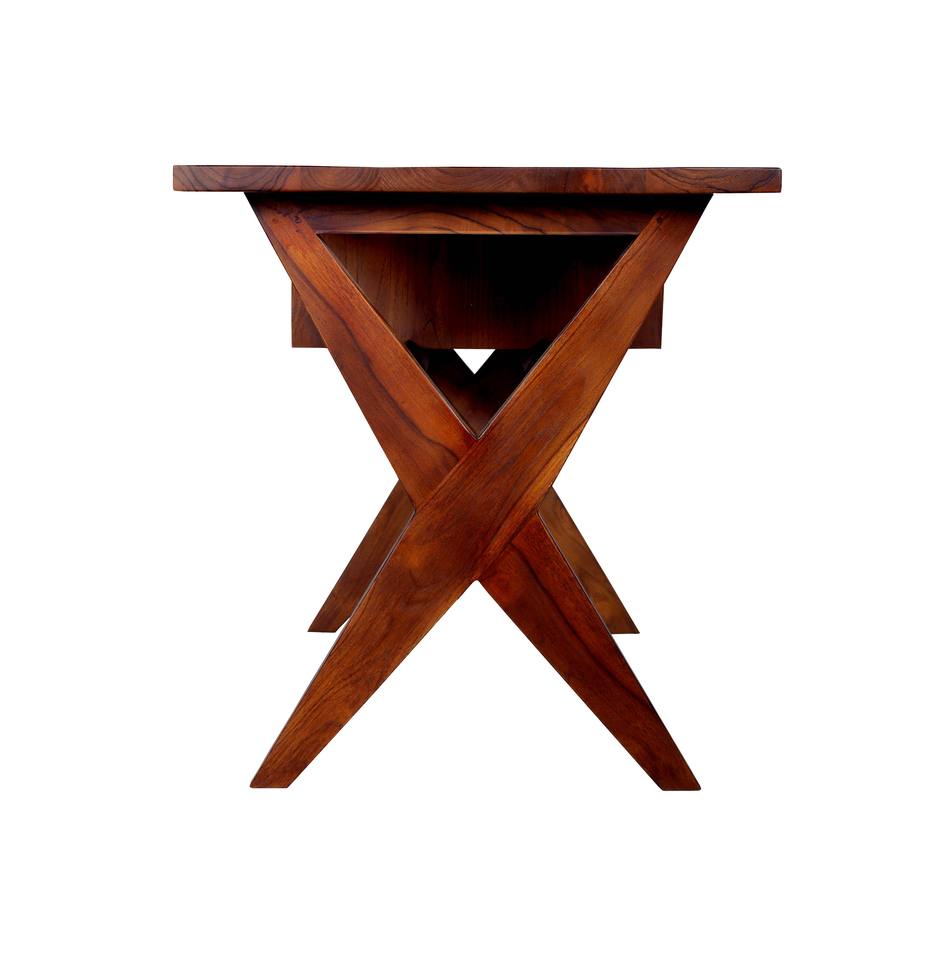 Modern Mid-Century Solid Wood X Legs Standing Office Desk Chair Set Handmade Rattan Cane Webbing Durable Customizable Manish Art