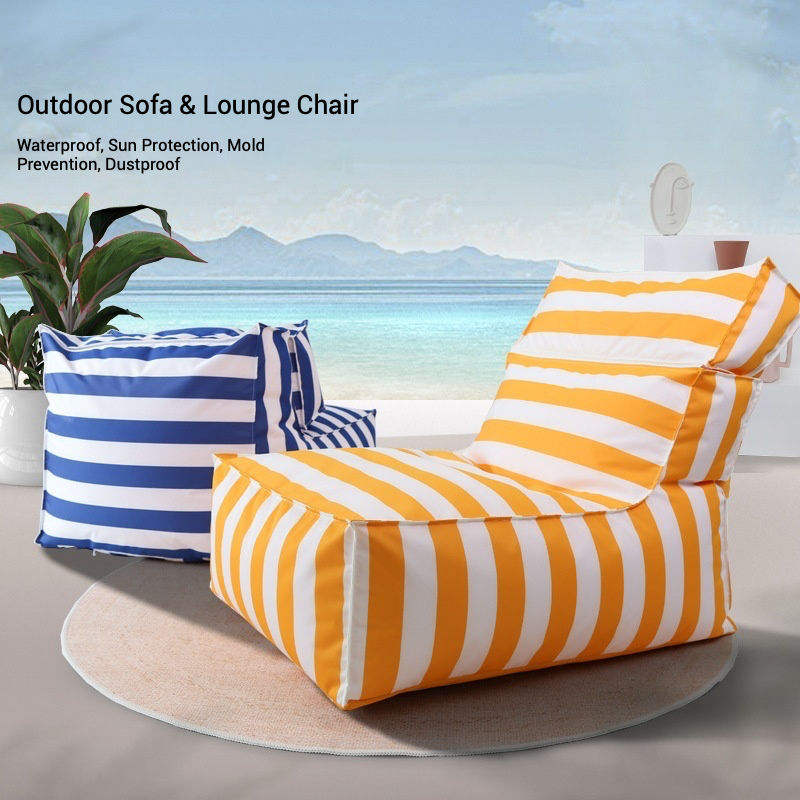 โซฟาบีนแบ็กผ้าลายทางกันเชื้อราแบบทันสมัย สำหรับใช้งานกลางแจ้ง พร้อมปลอกถอดซักได้ ขนาด 3000 มม. กันน้ำ เหมาะสำหรับลานบ้าน สวน และชายหาด