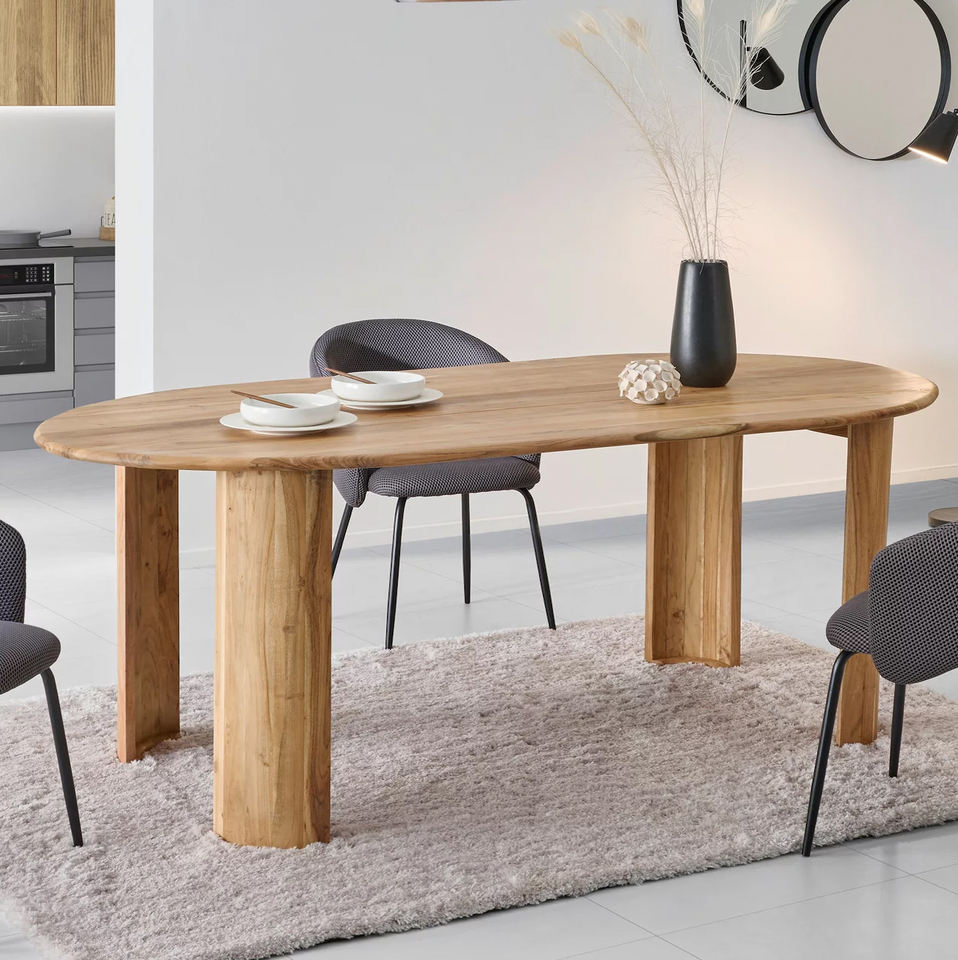 โต๊ะรับประทานอาหารทรงวงรีไม้กระถินณรงค์แท้ ดีไซน์เรียบหรูทันสมัย คุณภาพสูง ขาพับได้ เหมาะสำหรับบ้าน ห้องครัว ร้านอาหาร