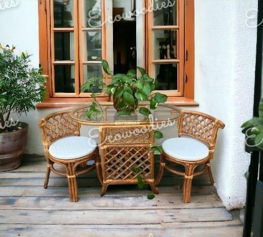 ชุดโต๊ะเก้าอี้หวายกลางแจ้ง3ชิ้นสำหรับบ้านไร่ร้านอาหารโรงแรมห้องนั่งเล่น