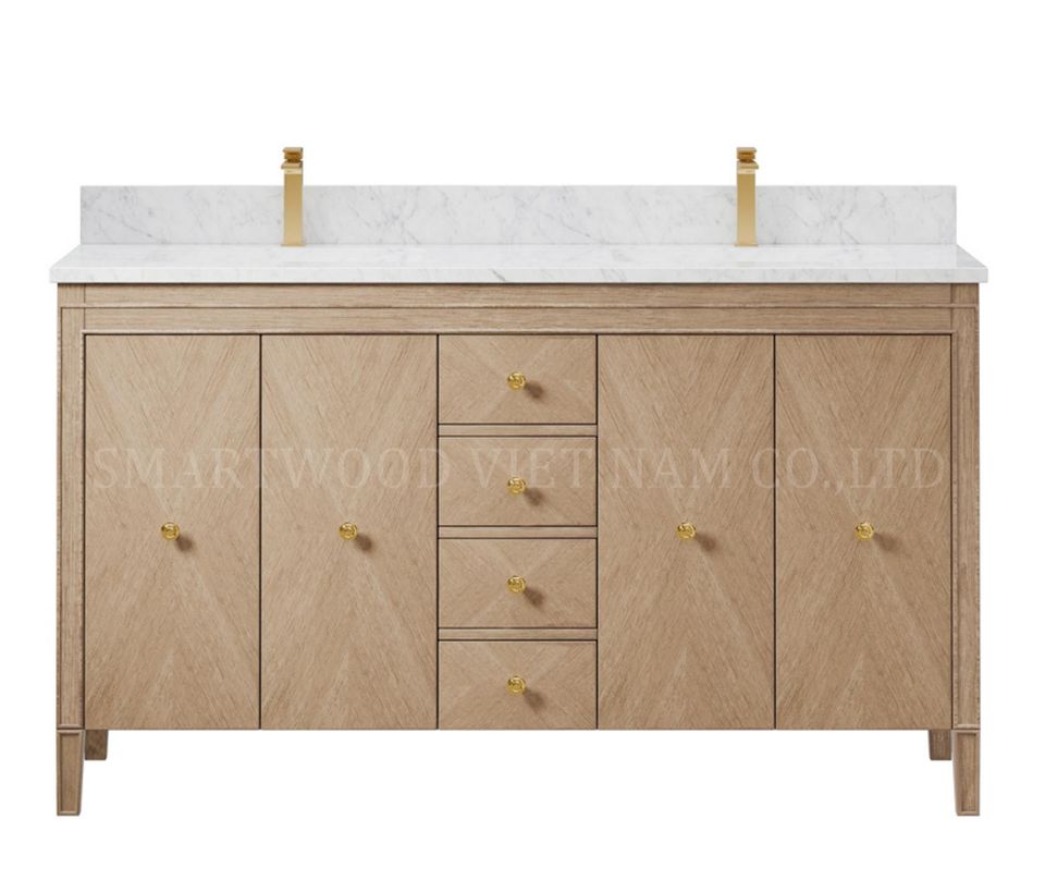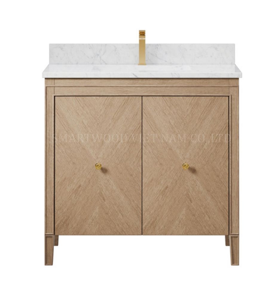 ชุดโต๊ะเครื่องแป้งห้องน้ำไม้โอ๊ค36in ขนาด18มม. แบบเรียบง่ายทันสมัยอ่างล้างหน้าทำจากหินเทียม
