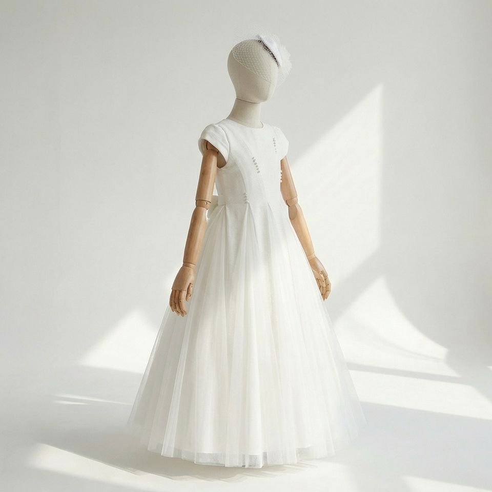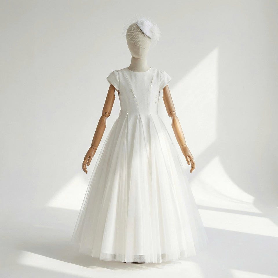 ชุดเดรสทรงเอไลน์สไตล์มินิมอลสมัยใหม่สำหรับเด็กผู้หญิง ประดับมุก สำหรับพิธีศีลมหาสนิท