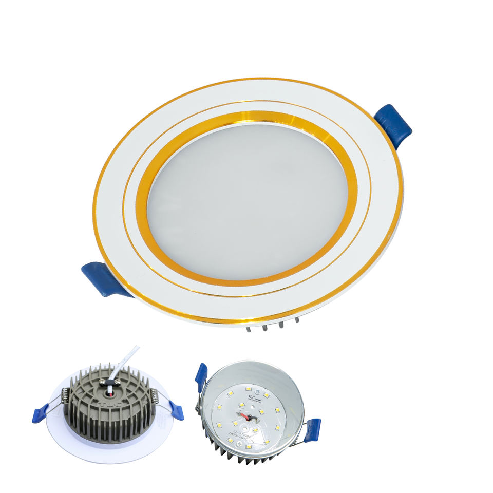 ไฟดาวน์ไลท์ LED อลูมิเนียมหล่อแบบเรียบง่ายทันสมัยพร้อมชิปซังปรับ IP20ได้ผู้ผลิตจากเวียดนามขอบทองใช้ในบ้านโรงแรม
