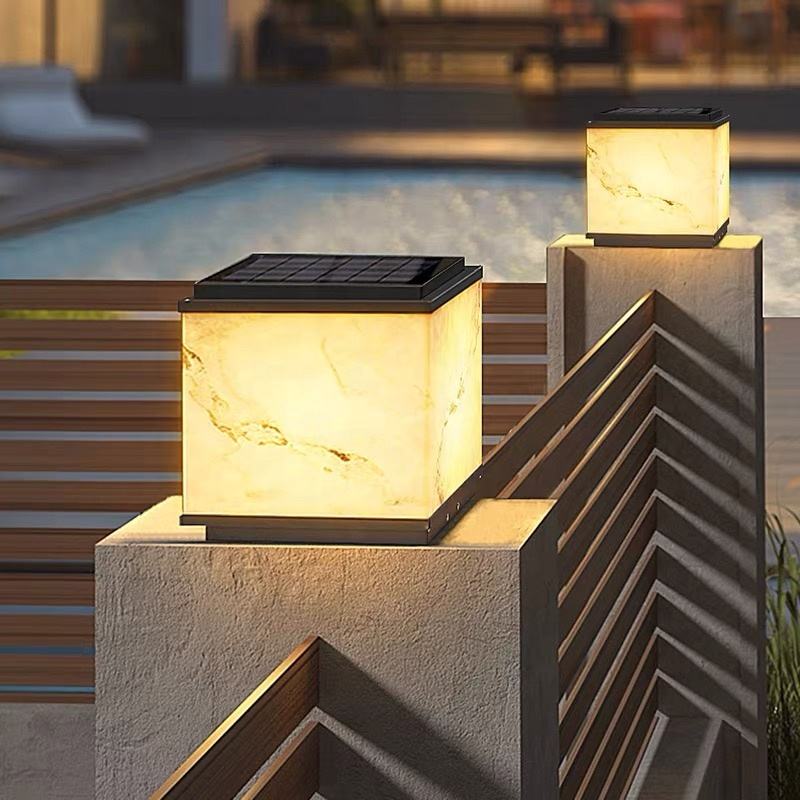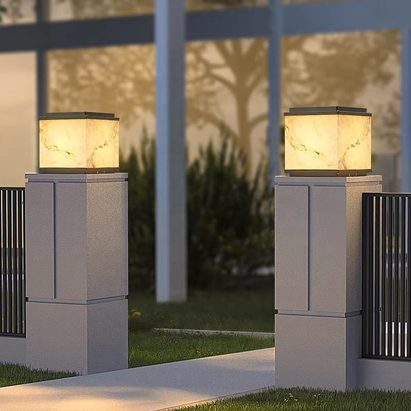 โคมไฟเสา LED สีดำ สไตล์โมเดิร์นมินิมอล ขั้ว E27 กันน้ำระดับ IP65 ทำจากอะลูมิเนียมและกระจก เหมาะสำหรับสวนกลางแจ้ง รั้วบ้าน ลานบ้าน วิลล่า พร้อมเซ็นเซอร์ตรวจจับแสง