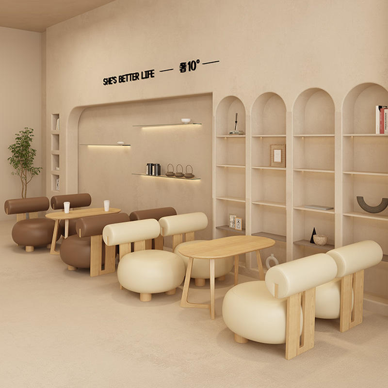 ชุดเฟอร์นิเจอร์คาเฟ่แบบเรียบง่ายทันสมัยเก้าอี้ไม้และหนังพร้อมโต๊ะกลมสำหรับร้านกาแฟ
