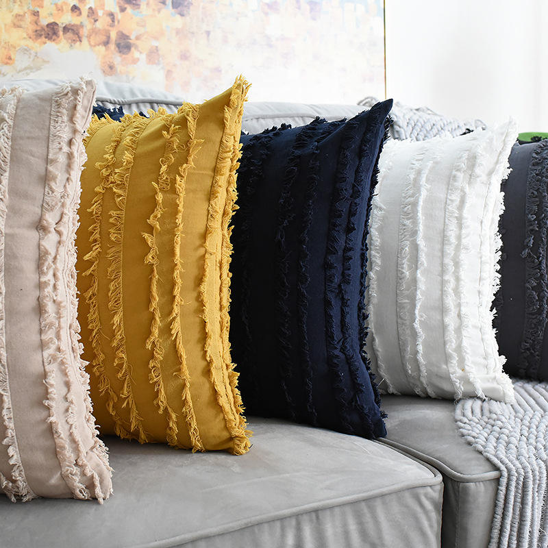 หมอนอิงผ้าฝ้ายลินินสไตล์มินิมอลทันสมัย สีพื้น รูปทรงสี่เหลี่ยมผืนผ้า สไตล์นอร์ดิก พร้อมไส้ใน