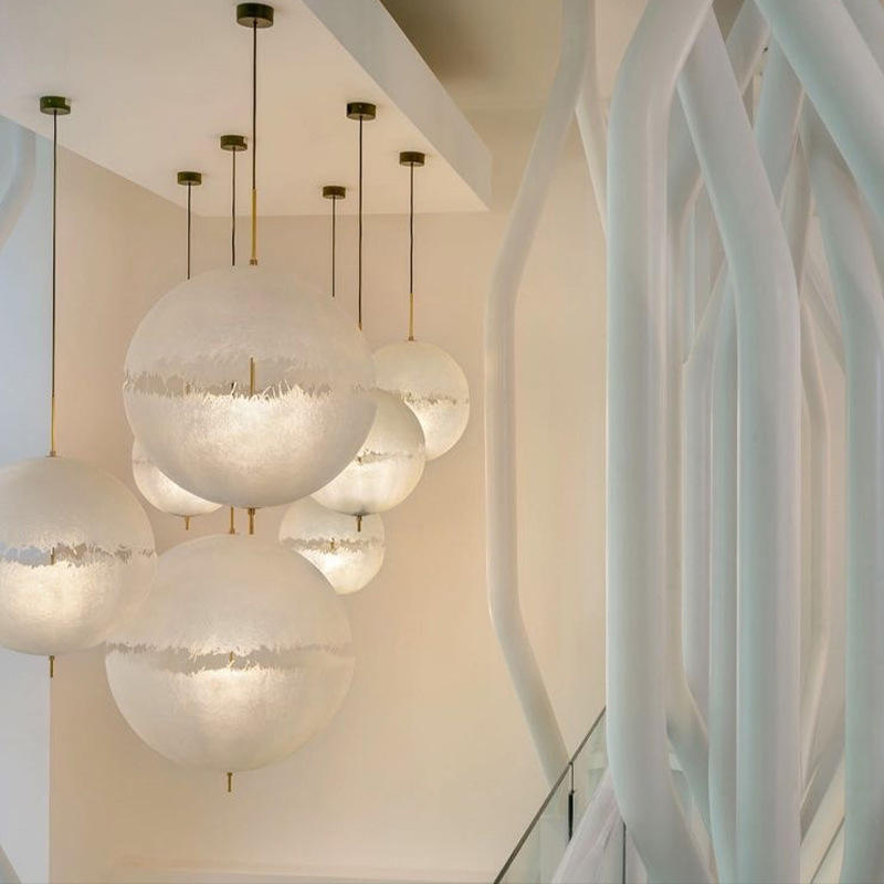 โคมไฟเพดานดีไซน์มินิมอลทันสมัยรูปทรงพระจันทร์สำหรับห้องนั่งเล่น ร้านอาหาร-โคมไฟระย้าดีไซน์สร้างสรรค์สำหรับร้านเสื้อผ้า