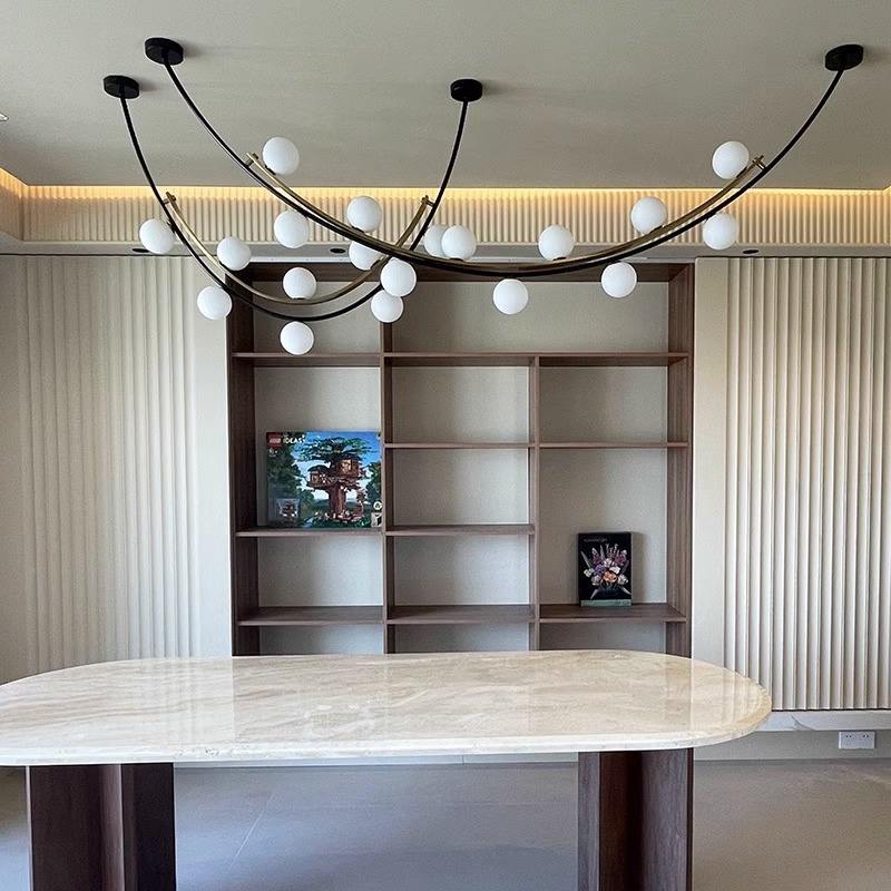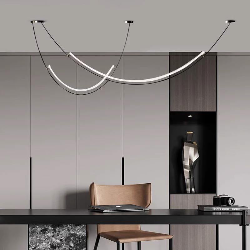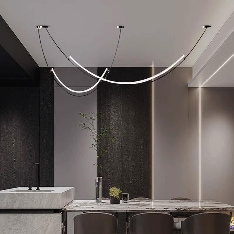 โคมไฟห้อยเพดานทรงยาวสไตล์โมเดิร์นมินิมอลสำหรับห้องรับประทานอาหาร/ห้องนั่งเล่น เคาน์เตอร์บาร์ ไฟ LED ปรับความสูงได้ ติดตั้งง่าย