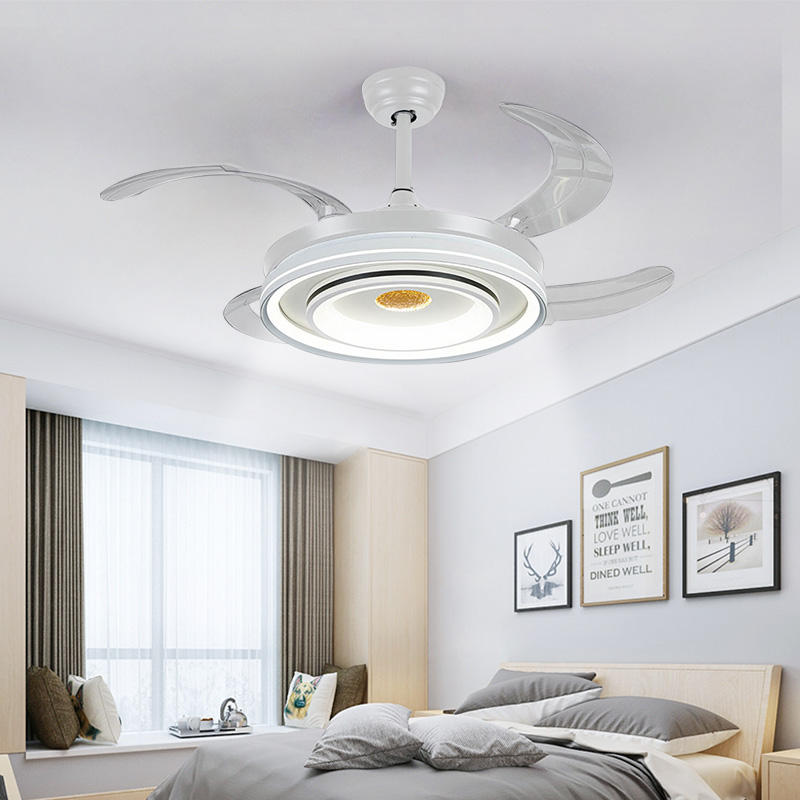 โคมไฟพัดลมติดเพดาน LED คริสตัลหรี่แสงได้สำหรับห้องนอนโรงแรมหรูหราเรียบง่ายทันสมัยมีไฟติดเพดาน