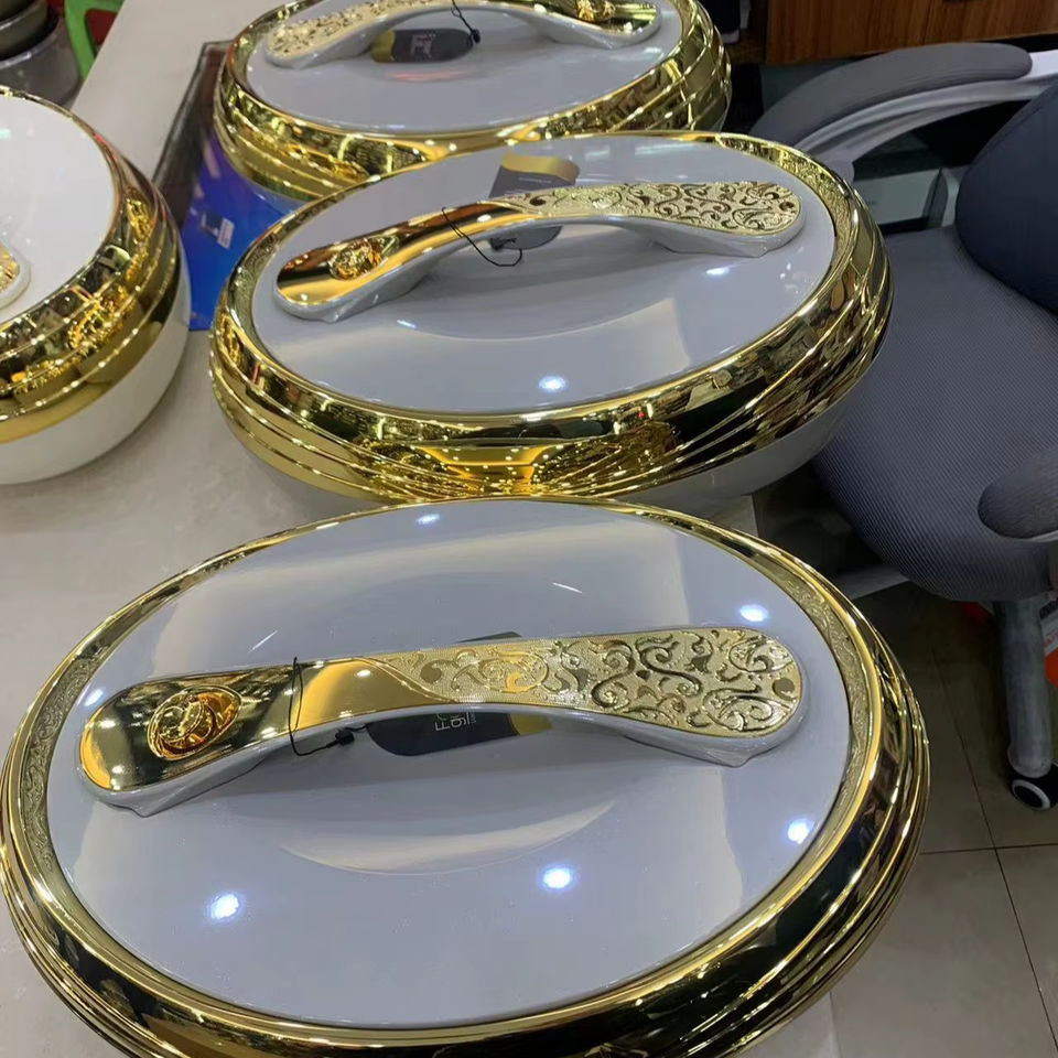 กระติกเก็บความร้อนแบบมินิมอลทันสมัย ขนาด 4 ลิตร 5 ลิตร 6 ลิตร ชุดหม้อเก็บอุณหภูมิพร้อมอุปกรณ์ตกแต่งสีทองหรูหรา 3 ชิ้น
