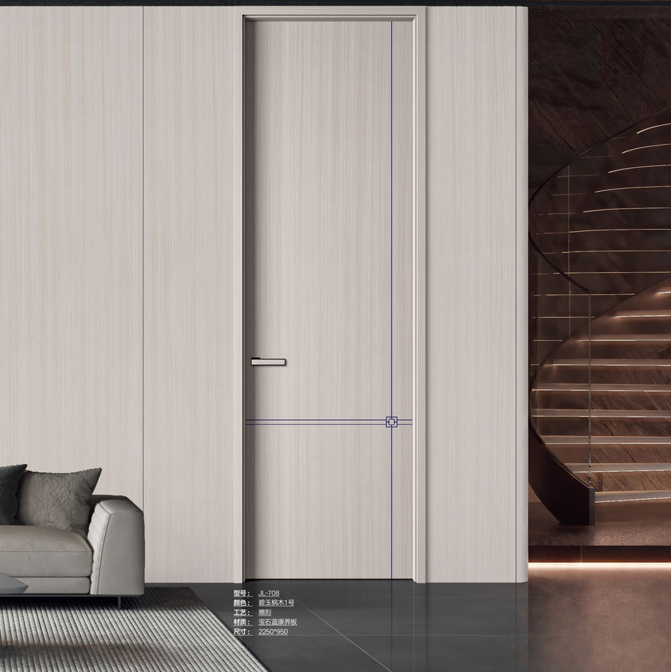 ประตูไม้เนื้อแข็งแบบไร้กรอบสไตล์โมเดิร์นมินิมอลสำหรับห้องนอน ห้องรับประทานอาหาร ห้องน้ำ ห้องนั่งเล่น ห้องครัว โรงแรม และโถงทางเดิน
