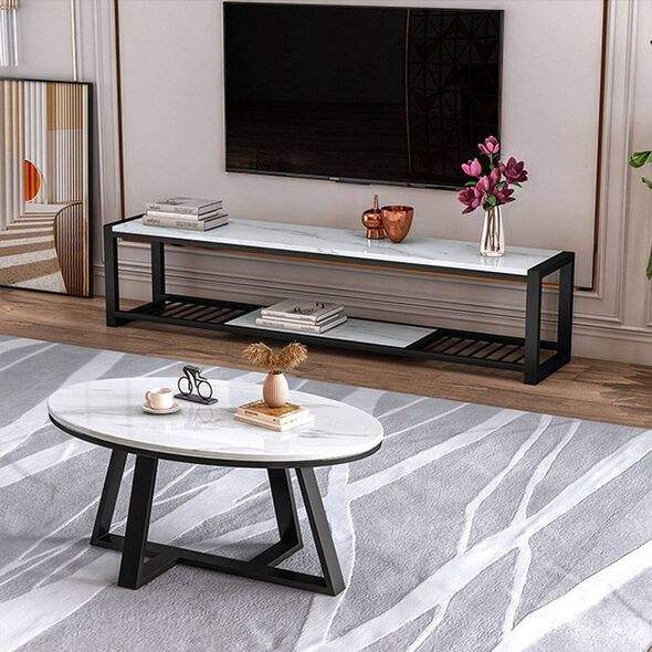 ขาตั้งทีวีทรงตัวแอล สไตล์โมเดิร์นมินิมอล คุณภาพสูง หรูหรา สำหรับห้องนั่งเล่น โครงเหล็กเคลือบสีฝุ่น