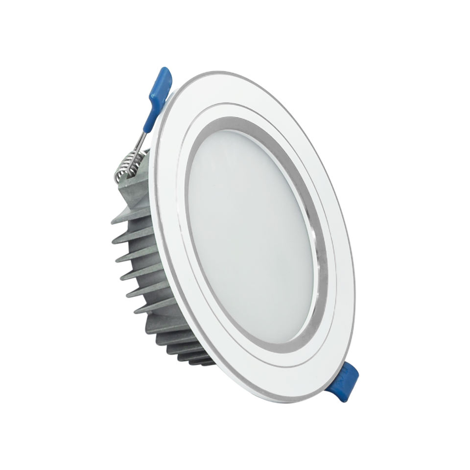 ไฟดาวน์ไลท์อลูมิเนียมแอลอีดีแบบเรียบง่ายทันสมัยพร้อมขอบสีเงินราคาดี IP20ผู้ผลิตในเวียดนามมีการติดตั้งสไตล์บ้านปิดภาคเรียน