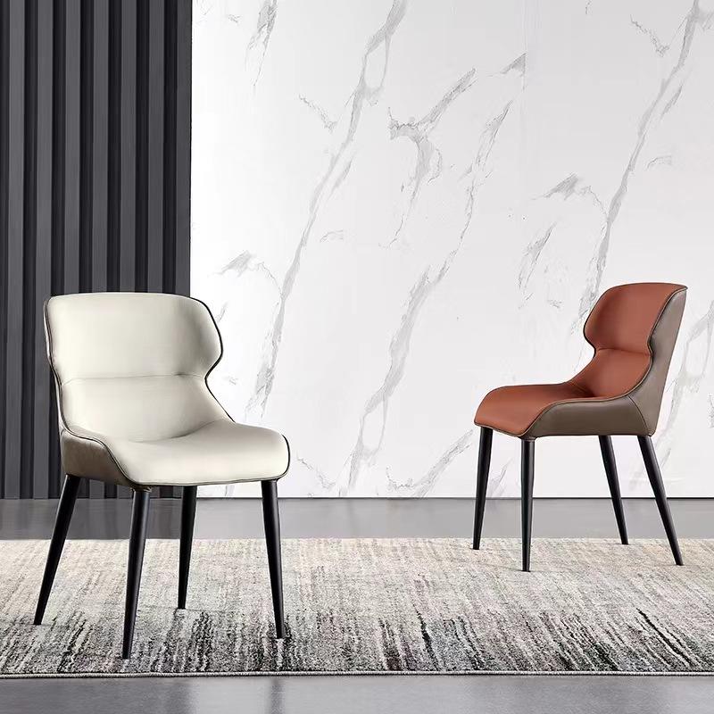 เก้าอี้รับประทานอาหารหุ้มหนังสไตล์มินิมอลสมัยใหม่ สีเบจ สีกากี สำหรับผู้ใหญ่ ดีไซน์สร้างสรรค์ รุ่น QS047