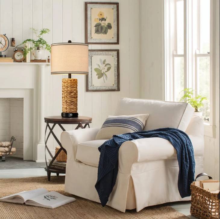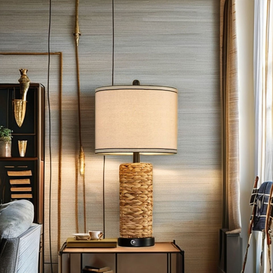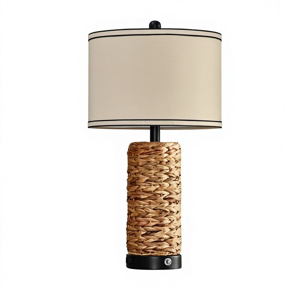 โคมไฟตั้งโต๊ะทรงกลองหวายโลหะสไตล์โมเดิร์นมินิมอล ขั้วหลอด E26 ดีไซน์เรียบง่าย ปรับความสว่างได้ แสงวอร์มไวท์ถนอมสายตา เหมาะสำหรับห้องนั่งเล่น