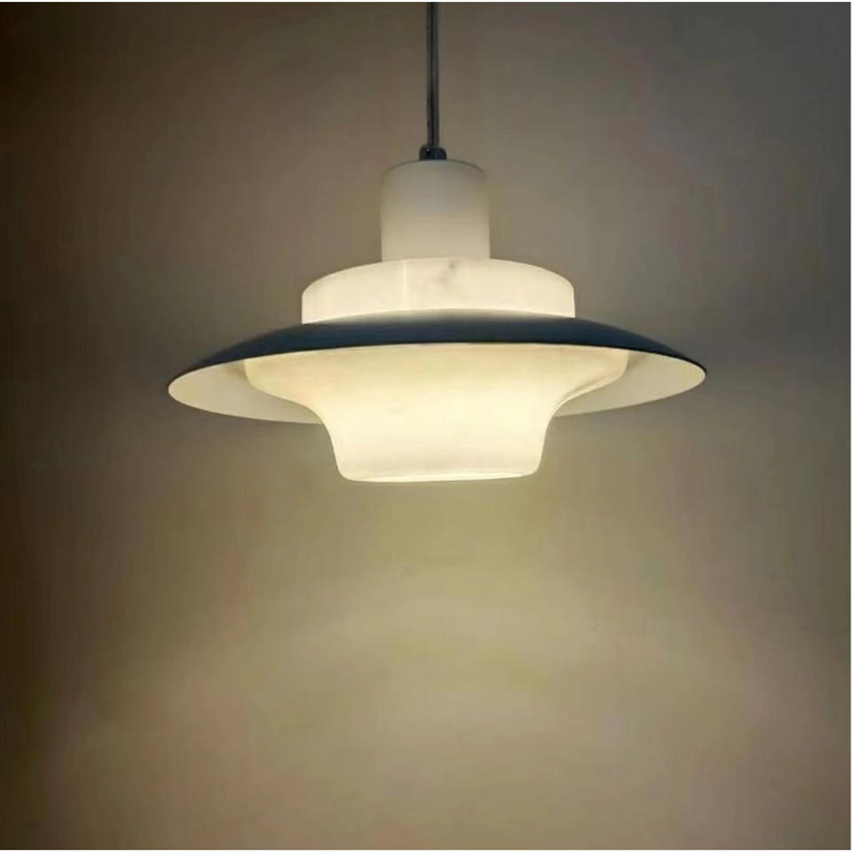 โคมไฟเพดานสไตล์นอร์ดิกมินิมอลทันสมัย โคมไฟหลายชั้น โคมไฟหินอ่อนรูปทรงยูเอฟโอสุดสร้างสรรค์สำหรับโคมไฟเพดาน