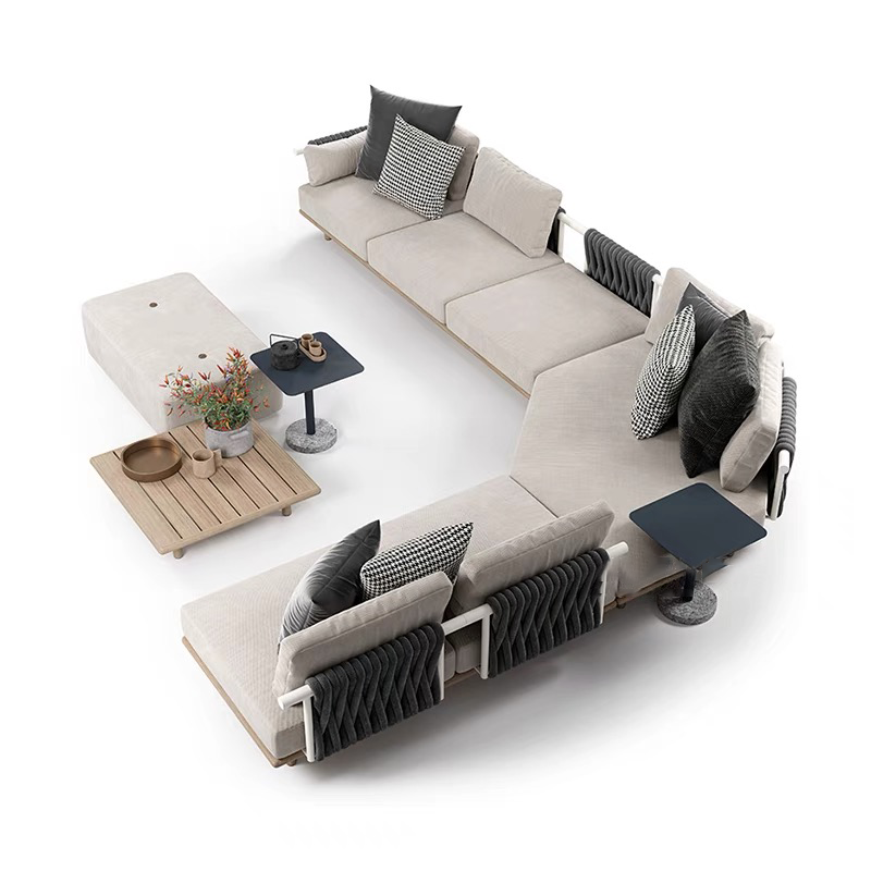 ชุดโซฟาหวายไม้แบบเรียบง่ายทันสมัยชุดโซฟากลางแจ้งเฟอร์นิเจอร์สวนสำหรับโรงแรมวิลล่า
