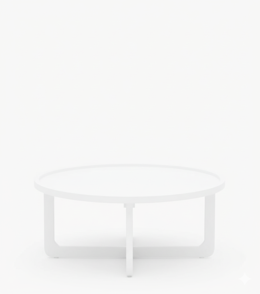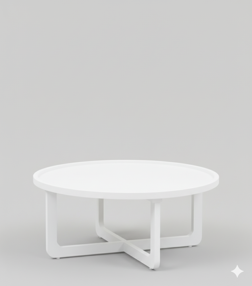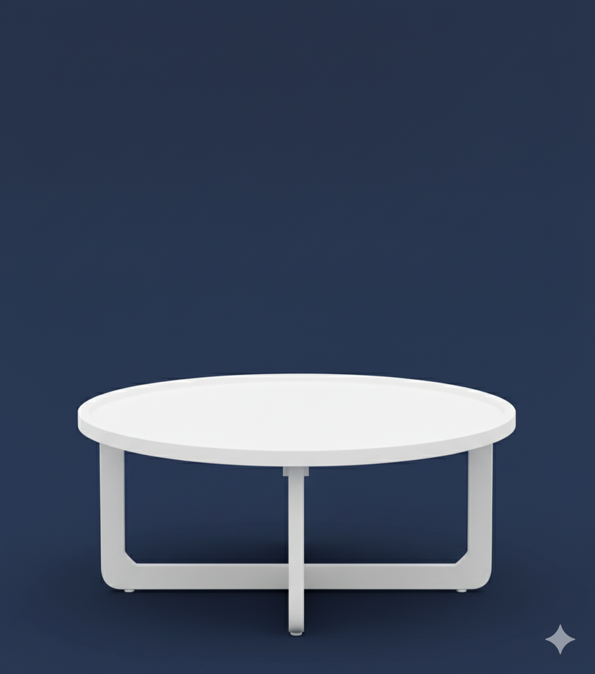 โต๊ะกาแฟทรงกลมสไตล์มินิมอลแบบทันสมัยห้องนั่งเล่นสีขาวเงาสูงเสร็จต่ำฐานรองขาถาดขอบด้านบน