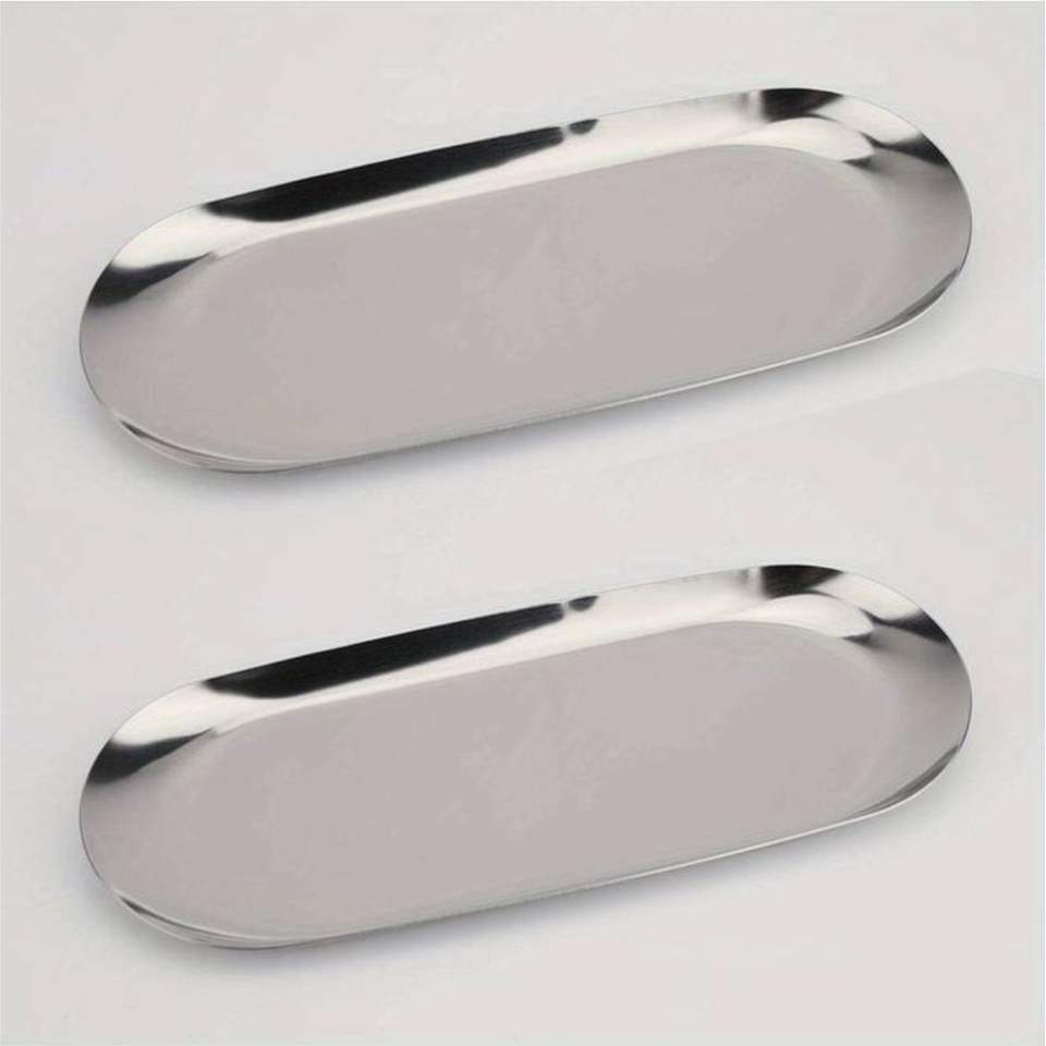 ถาดโลหะทรงกลมสไตล์มินิมอลทันสมัย - ถาดออตโตมันสแตนเลสสีเงินสุดหรู ถาดอเนกประสงค์สำหรับเสิร์ฟในครัว
