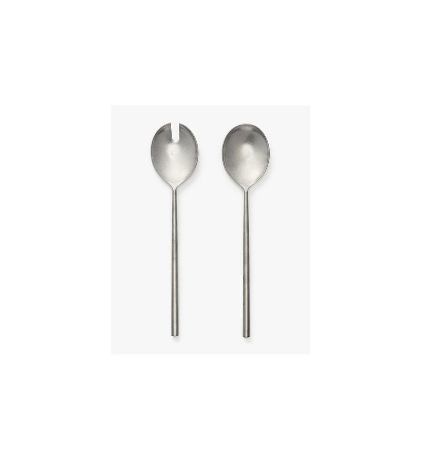 ช้อนและส้อมเสิร์ฟสลัดโลหะสีเงินสไตล์มินิมอลทันสมัย พร้อมดีไซน์ด้ามจับตรงเรียบหรูสำหรับการจัดโต๊ะอาหารสมัยใหม่