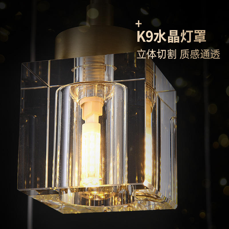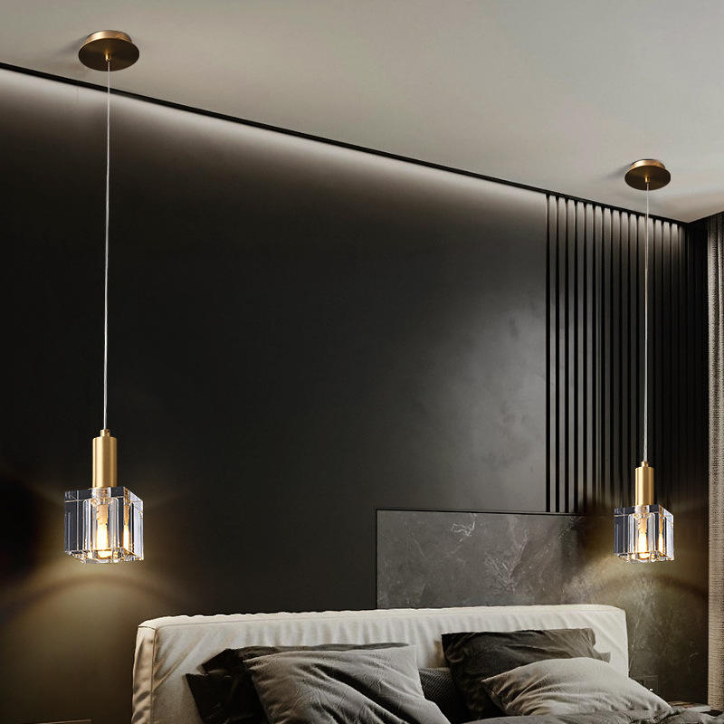 โคมไฟคริสตัลห้อยเพดานแบบมินิมอลทันสมัย ดีไซน์สร้างสรรค์เฉพาะตัว ทำจากทองแดงทั้งชิ้น เหมาะสำหรับข้างเตียง บาร์ เคาน์เตอร์ สายไฟยาว หรูหรา
