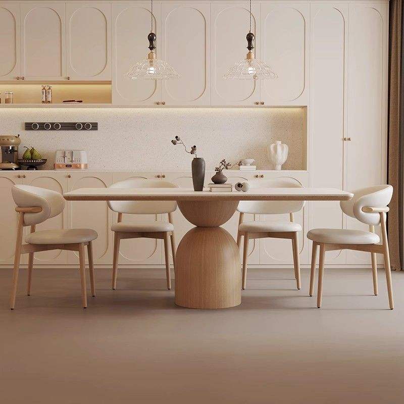 โต๊ะอาหารไม้เนื้อแข็งหินเผาแบบมินิมอลสมัยใหม่ ขายส่งโต๊ะอาหารหินอ่อน Travertine สำหรับห้องรับประทานอาหารและโรงแรม