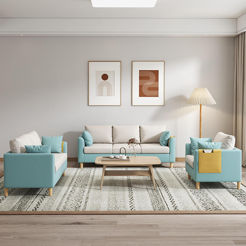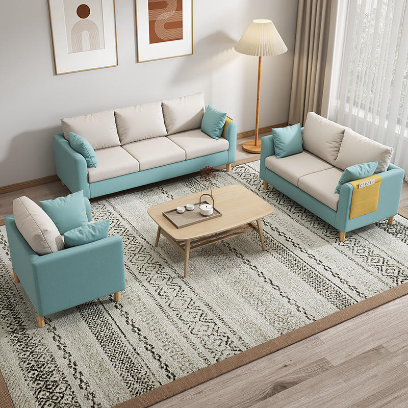 โซฟาสไตล์มินิมอลสมัยใหม่สำหรับห้องนั่งเล่นในอพาร์ทเมนต์ขนาดเล็ก หุ้มด้วยผ้าบุ พร้อมไส้โฟม ดีไซน์ทรงสี่เหลี่ยม สำหรับผู้ใหญ่