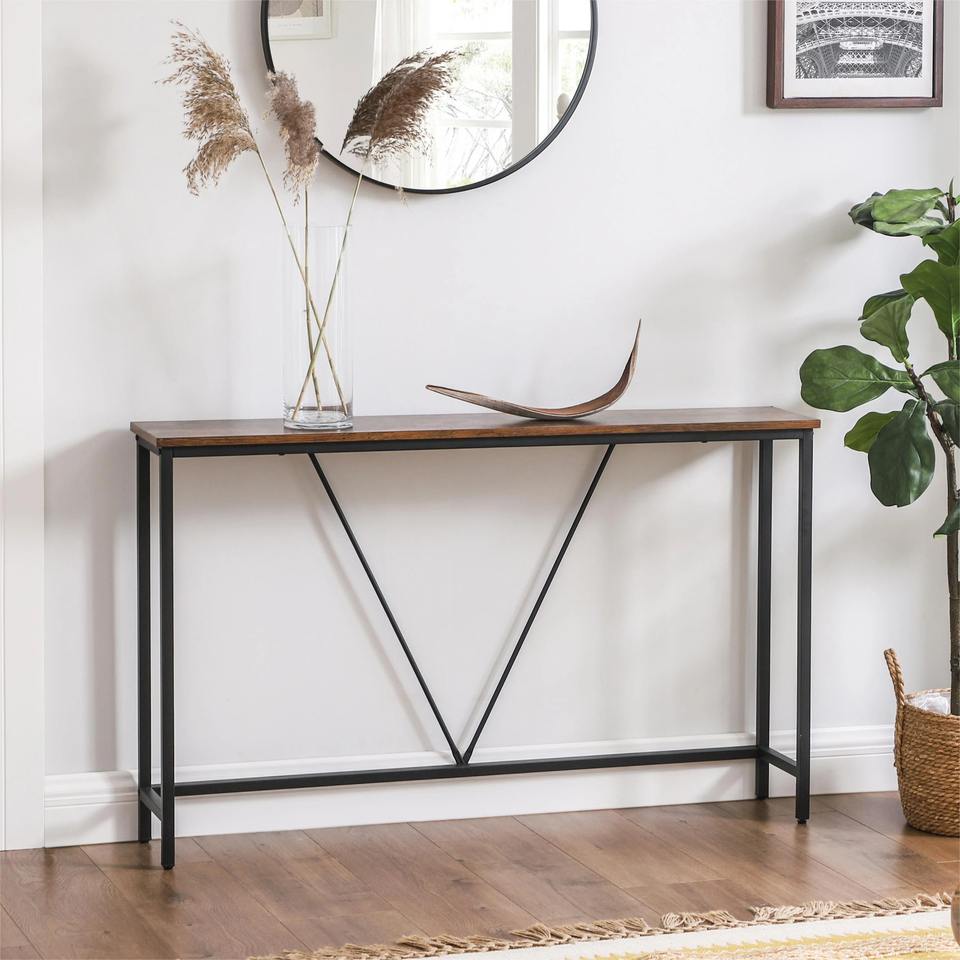 โต๊ะโซฟาแบบปรับเปลี่ยนได้สไตล์มินิมอลทันสมัย โครงเหล็กสีดำ รูปทรงสี่เหลี่ยมผืนผ้า ใช้เป็นชั้นวางของตกแต่งทางเข้าห้องนั่งเล่น เหมาะสำหรับอพาร์ทเมนต์และโรงแรม