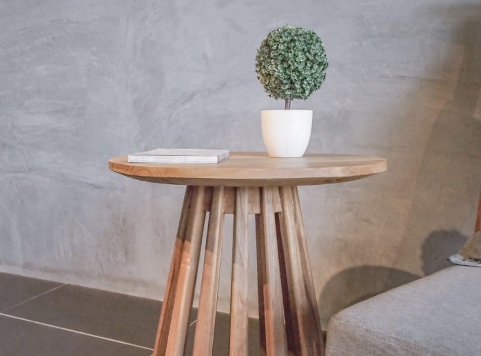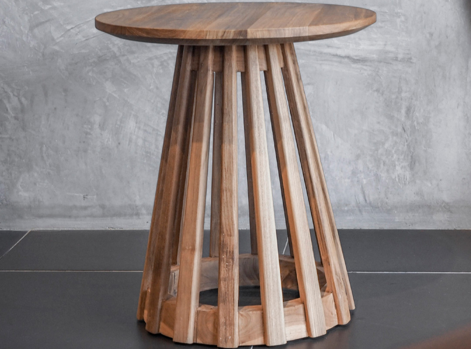 โต๊ะไม้สักเนื้อแข็งทรงกลมสไตล์โมเดิร์นแบบมินิมอลเฟอร์นิเจอร์ฐานที่มีเอกลักษณ์สำหรับห้องนั่งเล่นสำนักงานห้องนอนคาเฟ่โรงแรมวิลล่า