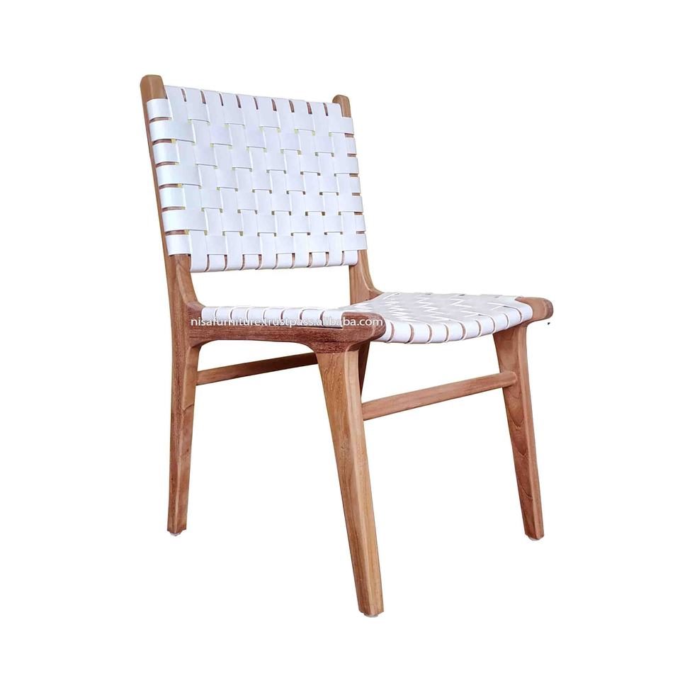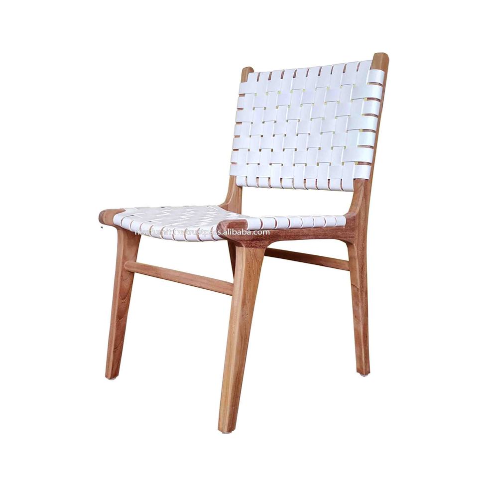 เก้าอี้ห้องรับประทานอาหารทำจากไม้สักเนื้อแข็งแบบเรียบง่ายทันสมัยเก้าอี้เชือกหนังแท้สีขาวห้องครัวร้านอาหารโรงแรมบ้านบาร์ชุดเฟอร์นิเจอร์