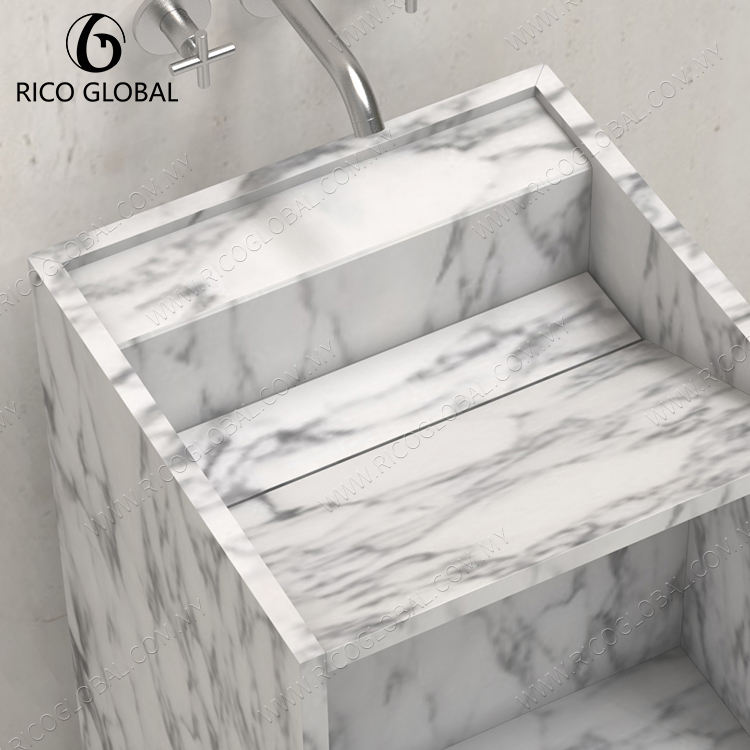 อ่างล้างหน้าฐานหินสี่เหลี่ยมแบบเรียบง่ายทันสมัยสำหรับห้องน้ำขนาดเล็ก