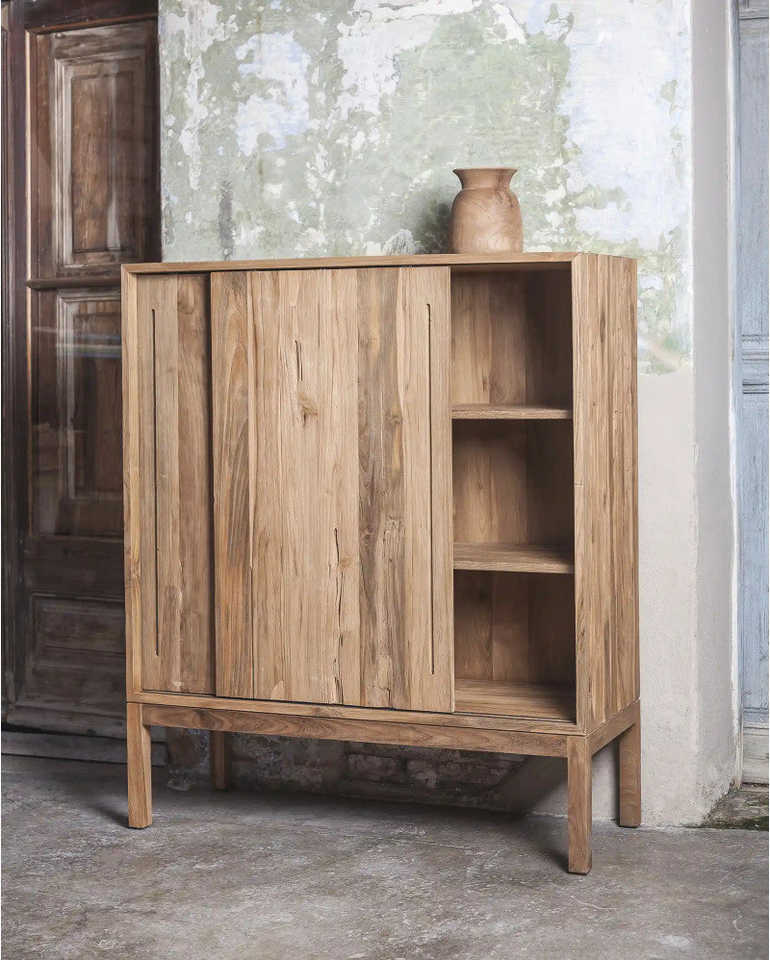 ตู้เก็บของไม้สักแท้สไตล์โมเดิร์นมินิมอล งานไม้ธรรมชาติ ประตูบานเลื่อน เป็นมิตรกับสิ่งแวดล้อม ทนทาน เหมาะสำหรับห้องนั่งเล่นและโรงแรม