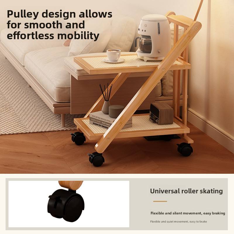 โต๊ะกาแฟไม้ไผ่สไตล์โมเดิร์นมินิมอลทันสมัย พร้อมล้อเลื่อน เคลื่อนย้ายได้ ใช้ในห้องนั่งเล่น ห้องนอน ห้องรับประทานอาหาร โต๊ะข้างโซฟา โต๊ะข้างเตียง