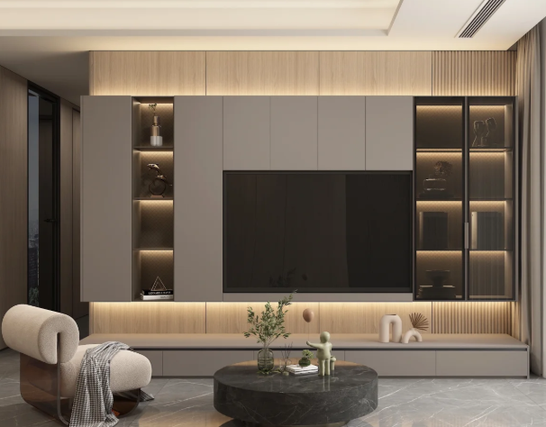 ตู้วางทีวีสไตล์โมเดิร์นมินิมอล เฟอร์นิเจอร์อเนกประสงค์สำหรับห้องนั่งเล่นและสำนักงาน ดีไซน์หรูหราสำหรับวางทีวีและเก็บของ
