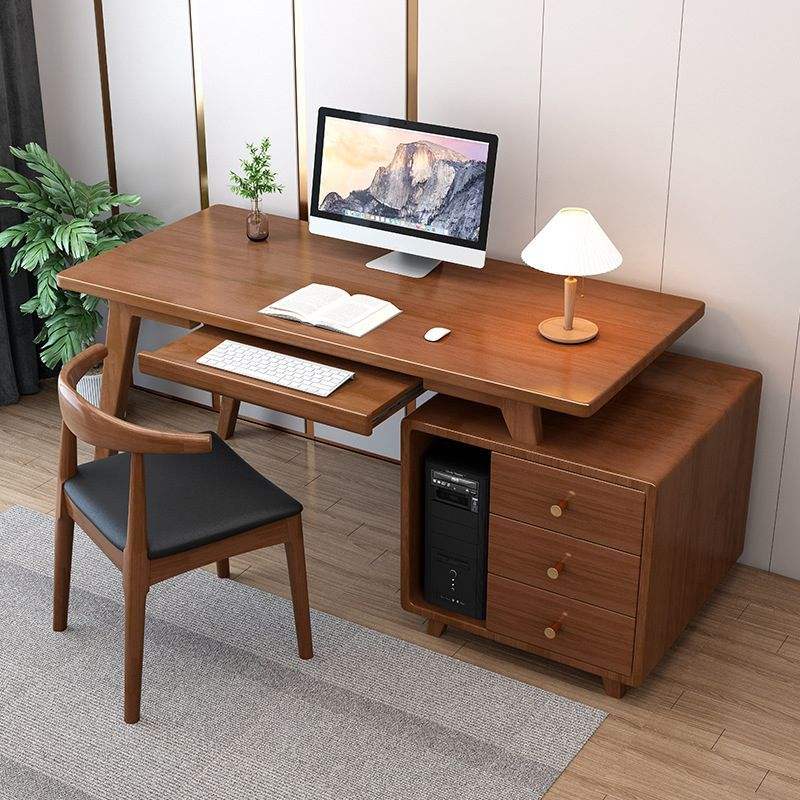 ชุดโต๊ะคอมพิวเตอร์ไม้สไตล์มินิมอลทันสมัย พร้อมเก้าอี้ตามหลักสรีรศาสตร์และลิ้นชักด้านข้างขนาดใหญ่