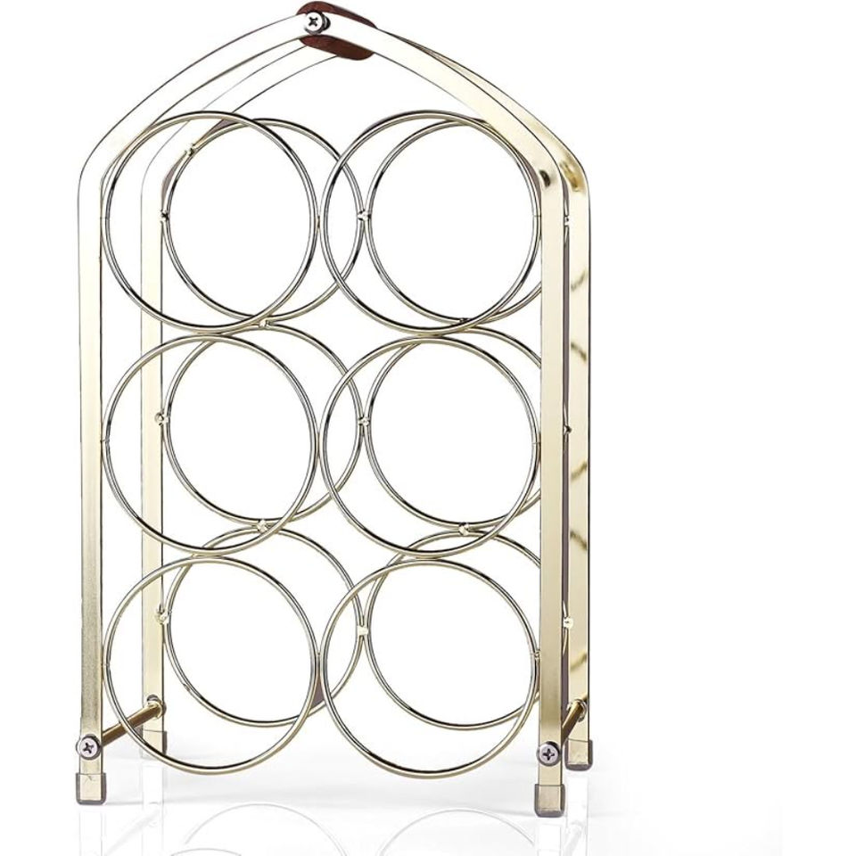 ชั้นวางไวน์แบบตั้งโต๊ะ 6 ขวด สไตล์โมเดิร์นมินิมอล แข็งแรงทนทาน ทำจากเหล็กดัดสีดำ สำหรับวางบนเคาน์เตอร์ ใช้จัดเก็บและโชว์ไวน์