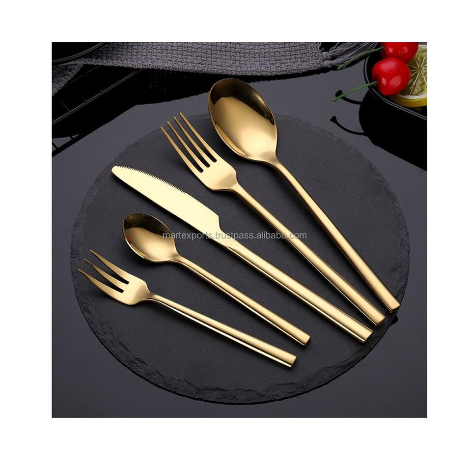 ชุดช้อนส้อมสแตนเลสเคลือบกระจกสีทองทันสมัยดีไซน์เป็นมิตรกับสิ่งแวดล้อมสำหรับการรับประทานอาหารในบ้านและโอกาสต่างๆ