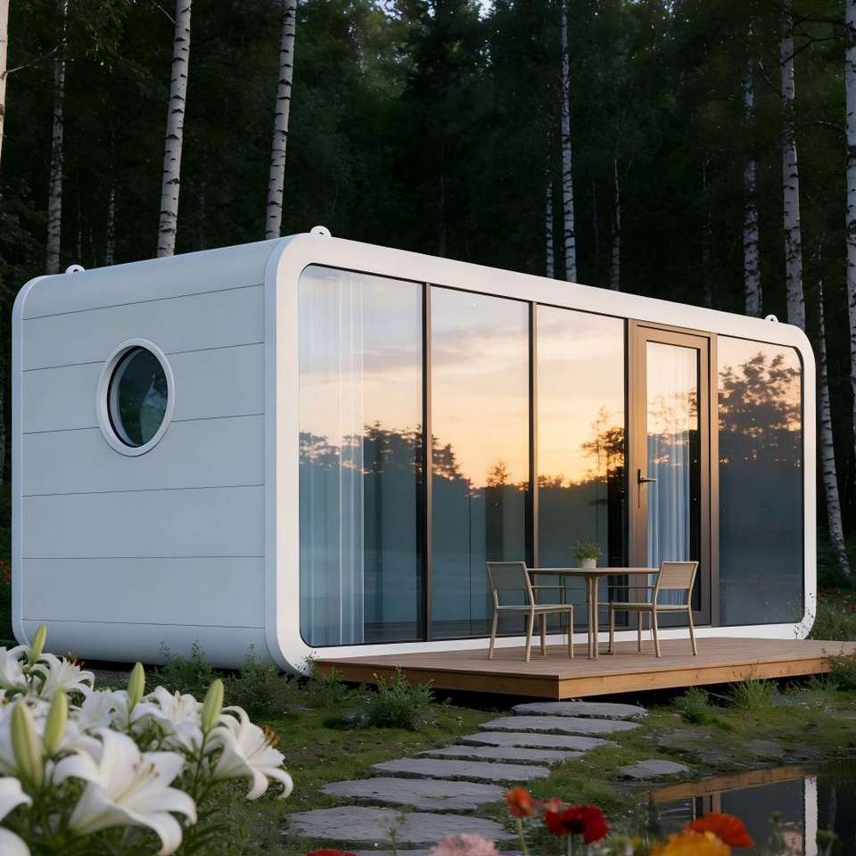 บ้านสำเร็จรูปโมเดิร์นแบบเคลื่อนย้ายได้ บ้านทรงกระท่อมแอปเปิ้ล ชุดบ้านแบบโมดูลาร์ บ้านสั่งทำพิเศษสำหรับโรงแรมขนาดเล็ก โซลูชั่นที่อยู่อาศัยแบบพกพา