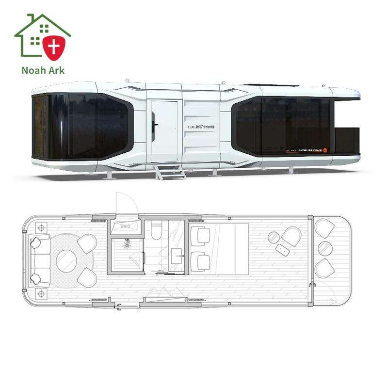 บ้านคอนเทนเนอร์สำเร็จรูปทันสมัย ปรับแต่งได้ ผลิตจากแผ่นเหล็กแซนวิช ใช้เป็นบ้านพักตากอากาศ